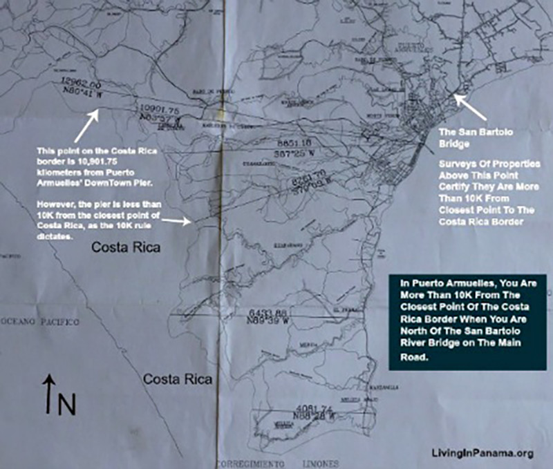 Here is the map of the Puerto Armuelles area with distances from border as done by a certified surveyor.