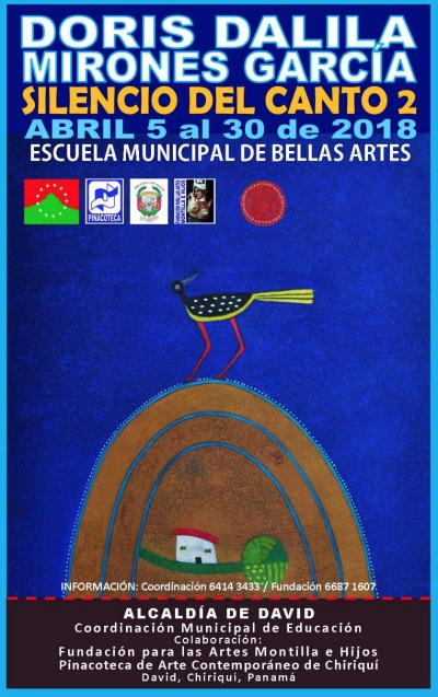 Pictured is the poster for an upcoming show. It opens an April 5 and closes April 30, 2018 The show is co-sponsored in part by the Fundacion para las Artes Montilla e Hijos and Pinacoteca de Arte Contemporaneo de Chiriqui. Both are Chiriqui focused art organizations. Call 6687-1607 for more information or to learn of up coming shows.