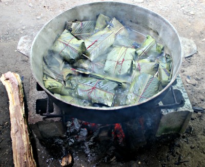 I was visiting a family recently and saw these tamales cooking in their back yard (see photo). They made the tamales to feed a work crew at their house.