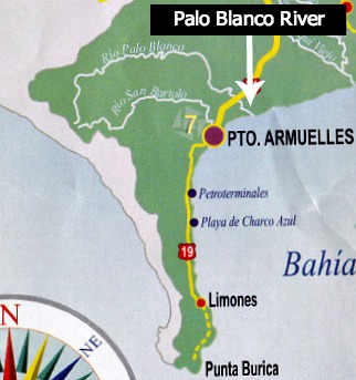 The river crosses the highway not far outside of Puerto Armuelles. We didn't make it all the way to the highway. The water level is too low this time of year.