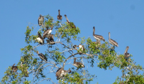 I did get a shot of Pelicans roosting in a tree by the river (see below).