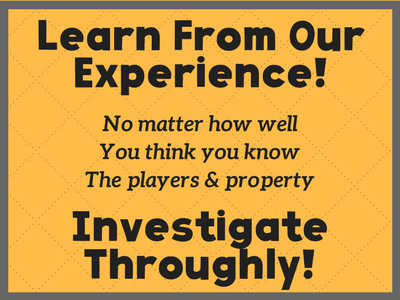 We assumed we knew everything we needed to know about the property. We had know the sellers for years, and made the mistake of believing what the sellers told us.