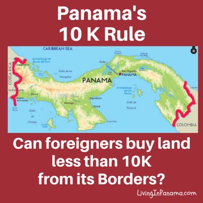 The rule says that a foreigner cannot own property within 10 kilometers of a border Panama shares with another country. The 10 kilometers is measured from a proposed property to the closest point on the border from that property.