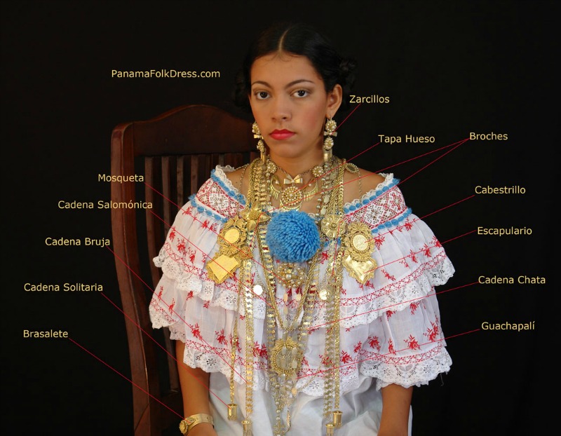 An important aspect of the dance is the costuming. Women wear La Polleras. A La Pollera is two separate pieces: a shirt and a Pollerón (long skirt). The gowns are detailed with colorful embroidery, lace, and ribbons.