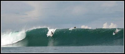 There are witnesses who say the wave out there is huge, hollow, and breaks for almost two kilometers.
