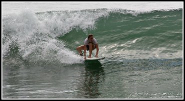 Surfing in Puerto Armuelles (Sarah pictured)The usual situation involves an offshore breeze in the morning that turns to onshore around midday - Except on cloudy days, when the wind never picks up and the surf stays good all day long.