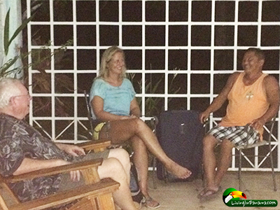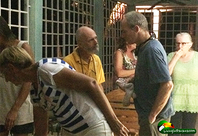 Reyn talks with long-time local expat, Gilbert, a french Canadian, and others.