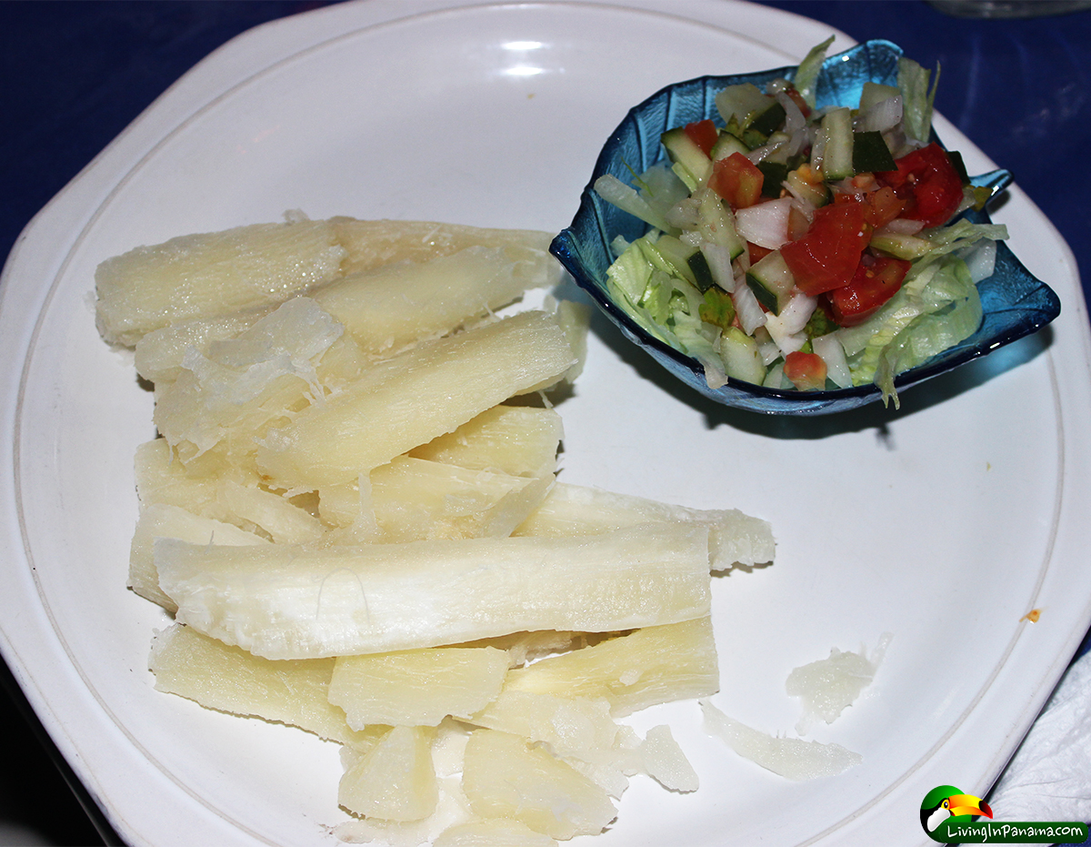 The side dishes were the usual, meaning french fries and Patacones (fried plantains). As usual, there were no vegetables offered, other than steamed Yucca, a starchy root vegetable, and a tiny garden salad of iceberg lettuce, tomato, and onion. However, the presentation was pretty nice, for a budget Panamanian restaurant.